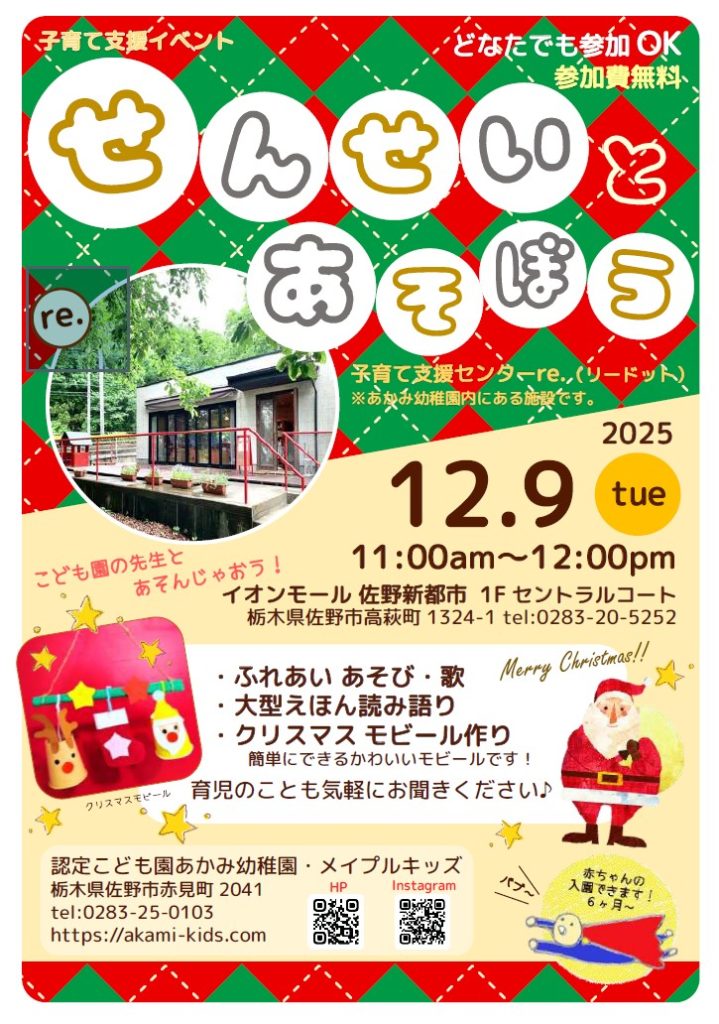 イオンモール佐野新都市様より、お誘いを受け、12/9に子育て支援イベントに参加させていただきました。